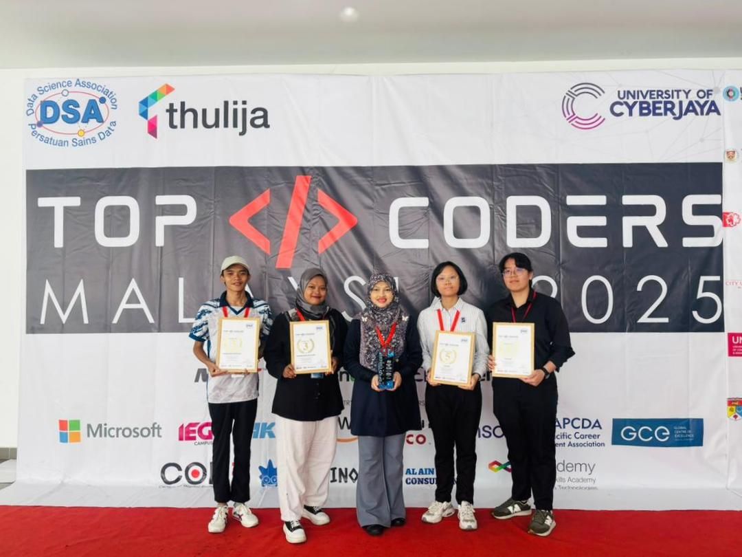 16 NOVEMBER 2025 | “Top Coders Malaysia 2025” is a national-level coding competition for university students, organized by the Data Science Association (DSA) and powered by industry partners such as Thulija. The competition brings together top student programmers from across the country to showcase their skills and creativity. FSKTM is proud to have accompanied two finalist teams from the faculty revenant (Nik Nuraina Umairah Binti Che Harun, Muhammad Amir Syahmi Bin Zuber) and 404 Not Found (Goh Shu Chen, Kek Xiu Min) to Universiti Cyberjaya to participate in The National Level of the Top Coders 2025 Coding Challenge.